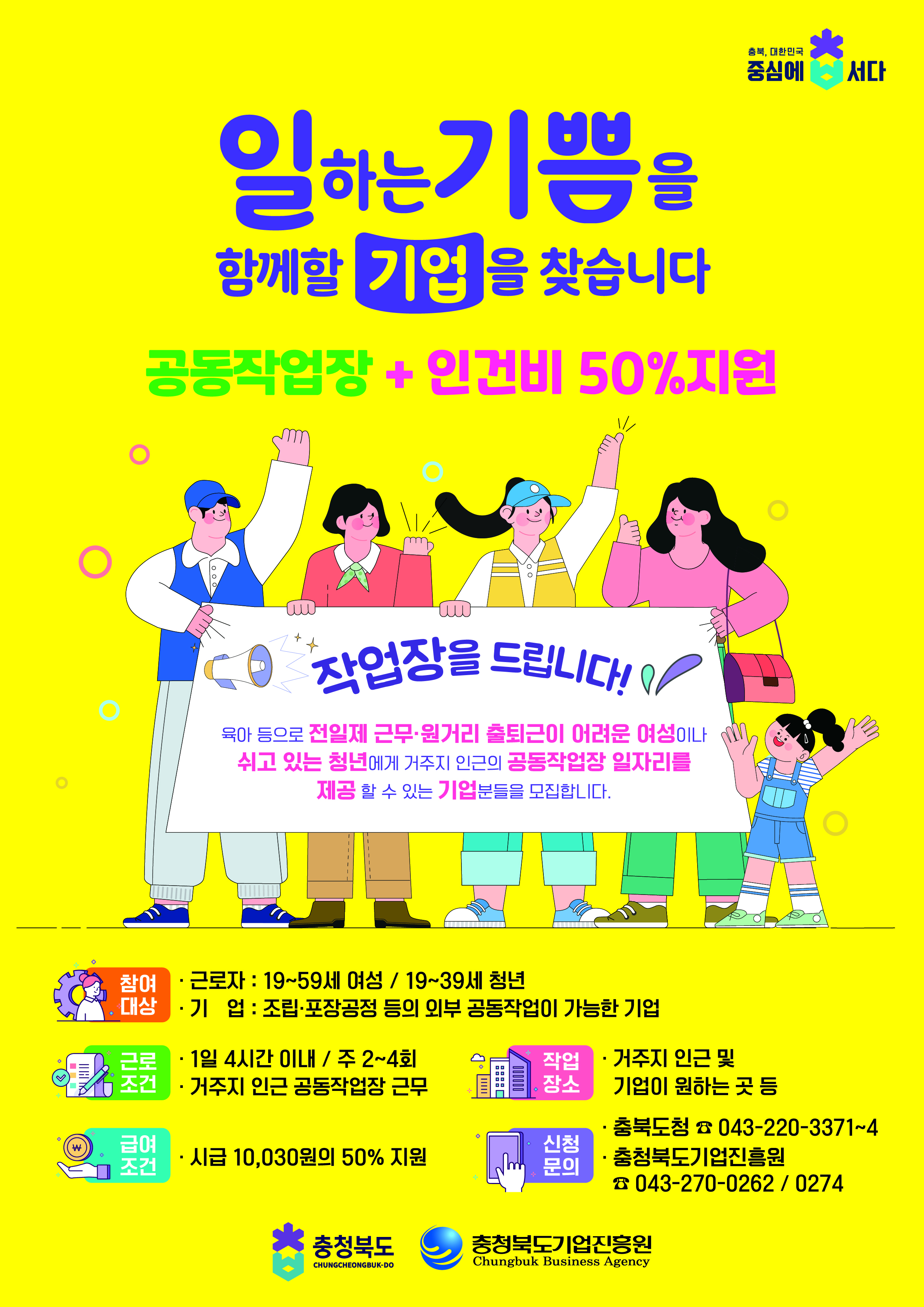 자세한 문의는 충청북도 일자리정책과 지역상생일자리팀(043-220-3371~3374)으로 연락바랍니다.