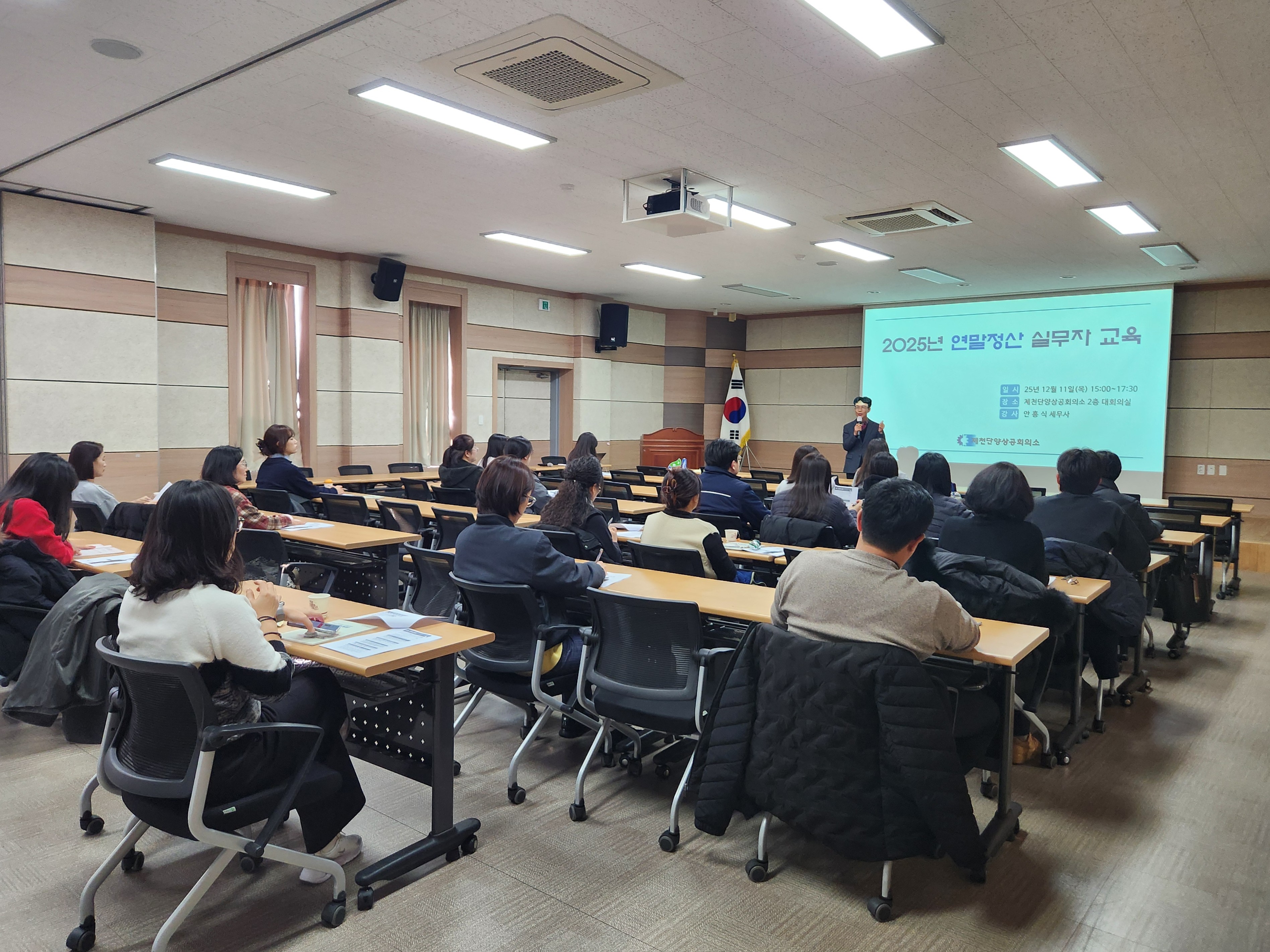 가. 교육명 : 2025년 귀속 연말정산 실무자 교육 나. 일 시 : 2025. 12. 11.(수) 다. 장 소 : 제천단양상공회의소 2층 대회의실 라. 대 상 : 회계, 경리, 급여 담당자 등 40명 마. 내 용 ■ 연말정산 실무 교육안내